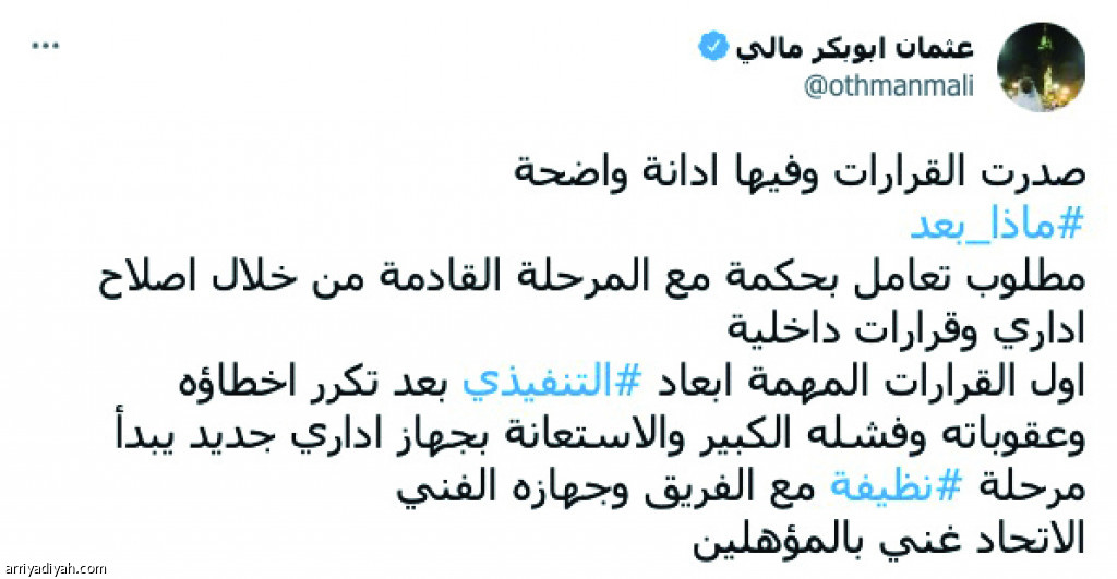 بعض الإعلاميين، سخروا من القرارات لحظة صدروها، كما فعل عثمان أبو بكر مالي، الذي كتب: “طلباتنا، أوقفوا #الدوري هناك تلاعب، هبطوا #الاتحاد درجة أولى للتحريض، أعفوا #إدارة الاتحاد لمخالفتها الأنظمة، اشطبوا #حمد الله للخيانة، امنعوا #العميد من التسجيل فترتين، امنعوا #الساطي اللعب لناد سعودي نهائيًا”، مضيفًا: “القرارات إيقاف لاعب وفترة واحدة، إيقاف إداريين، إنه #الاتحاد”، ولكن بعدها بساعتين، تغيرت لغة مالي، وبدأ ينتقد الإدارة، وكتب سلسلة تغريدات في هذا الشأن، منها: “صدرت القرارات وفيها إدانة واضحة، #ماذا بعد، المطلوب التعامل بحكمة مع المرحلة القادمة من خلال إصلاح إداري وقرارات داخلية”، مضيفًا: “أول القرارات المهمة إبعاد #التنفيذي بعد تكرر أخطائه وعقوباته وفشله الكبير والاستعانة بجهاز إداري جديد يبدأ مرحلة #نظيفة مع الفريق وجهازه الفني الاتحاد غني بالمؤهلين”.