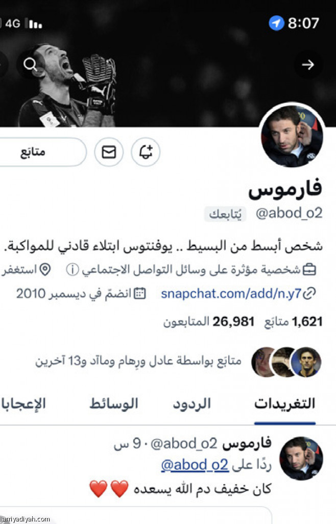 يعدُّ المغرد فارموس، الذي يتابعه نحو 26 ألف شخص على منصة “تويتر”، من محبي رياضة كرة القدم.