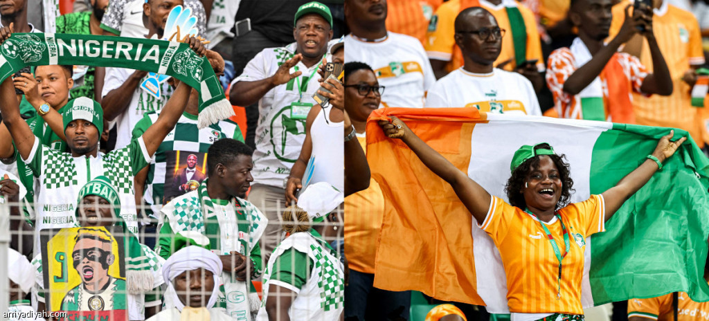 جماهير كوت ديفوار ونيجيريا خلال مؤازرتهم منتخبي بلادهما في موجهتي نصف النهائي أمام جنوب افريقيا والكونغو الديمقراطية قبل التأهل الى المباراة النهائية (الفرنسية)