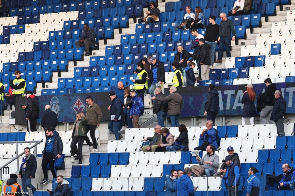 عدد من المشجعين يغادرون ملعب جيويس في بيرجامبو بعد تأجيل مباراة فيورنتينا وأتلانتا (الأوروبية)