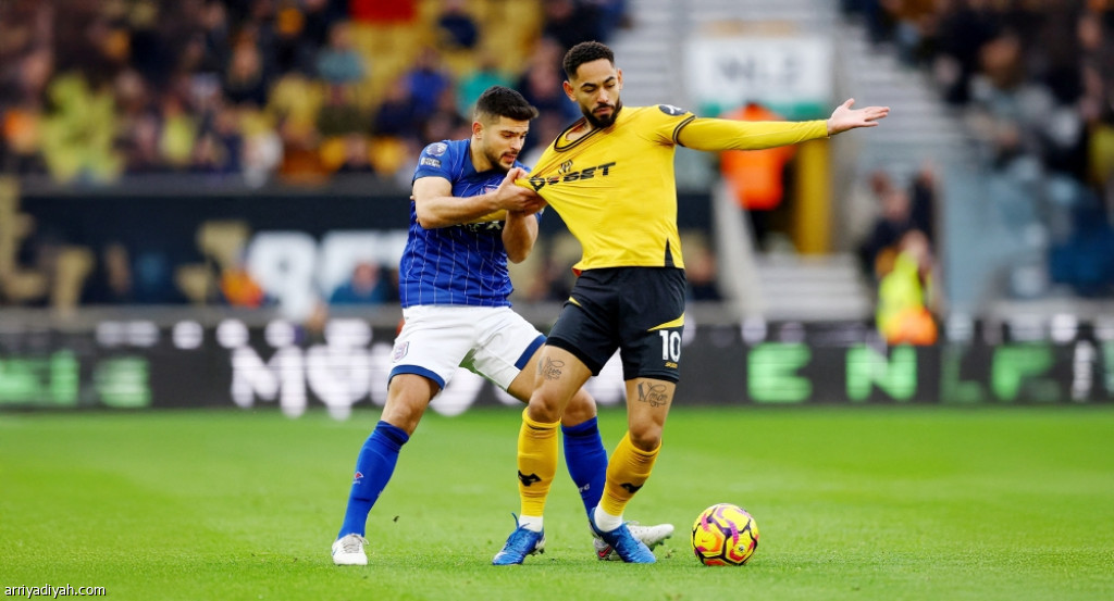 البرازيلي ماتيوس كونيا، مهاجم فريق وولفرهامبتون واندرارز الأول لكرة القدم في صراع على الكرة خلال مواجهة إبسويتش، 14 ديسمبر الجاري (رويترز)