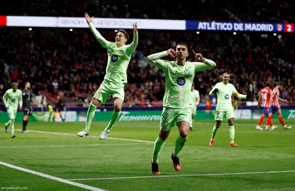 فيران توريس لاعب فريق برشلونة الأول لكرة القدم يحتفل بتسجيل هدفه الرابع خلال الفوز على اتلتيكو 2-4 الأحد ( رويترز)