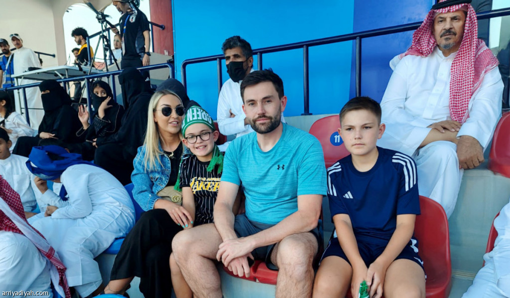 وحرص المهندس الإنجليزي سير أولجان، العامل في مطار الطائف، على حضور اللقاء من مدرجات ملعب عكاظ برفقة زوجته إيمي وطفليه بوباي «10 أعوام» وإريشي «7 أعوام».