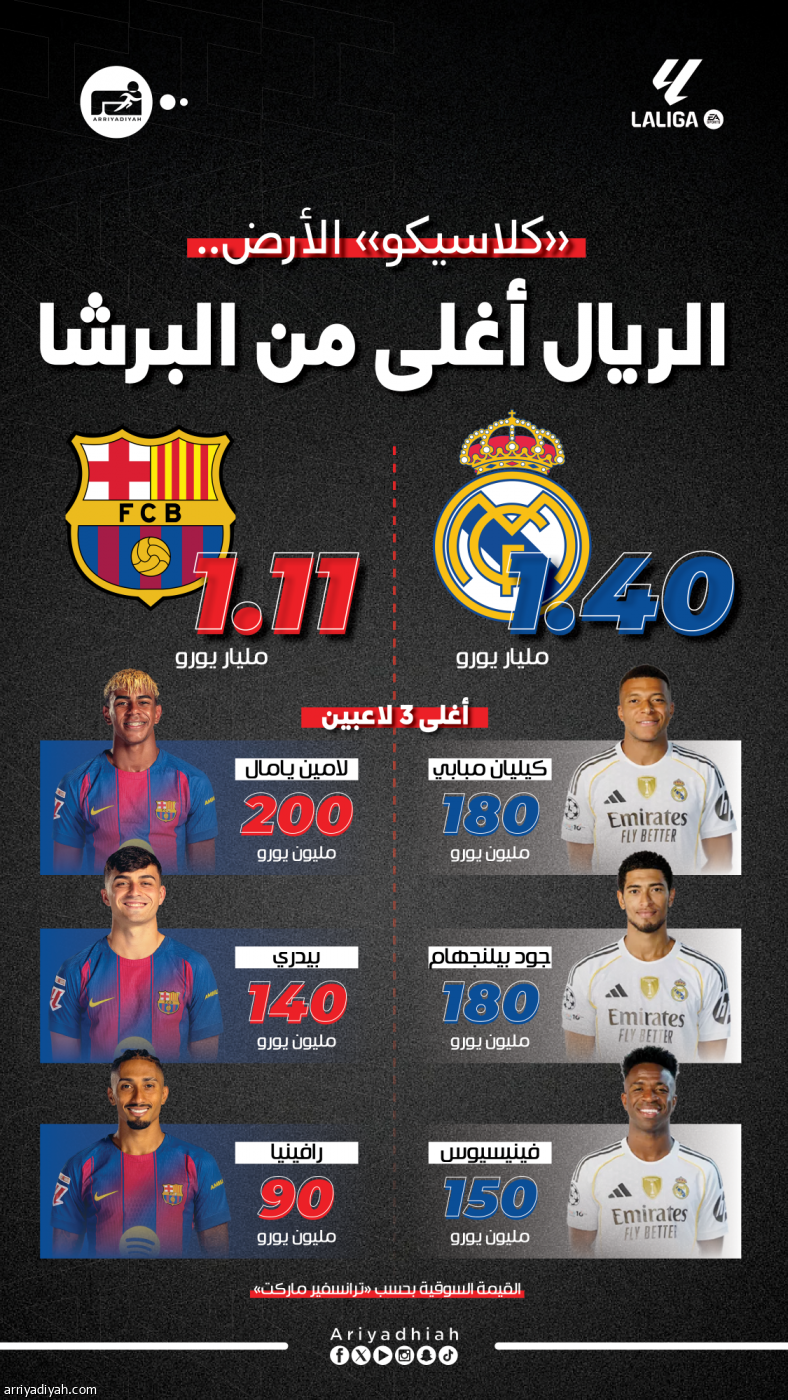 «كلاسيكو» الأرض.. الريال أغلى من البرشا