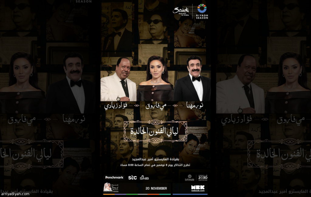 تستعد الرياض لاستقبال أمسية فنية بعنوان ليالي الفنون الخالدة على مسرح أبو بكر سالم، ضمن فعاليات موسم الرياض، التي تنظمها شركة بنش مارك.