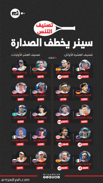 تصنيف التنس.. سينر يخطف الصدارة