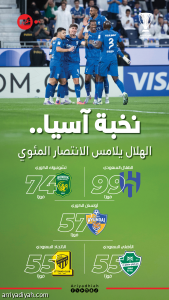 نخبة آسيا.. الهلال يلامس الانتصار المئوي