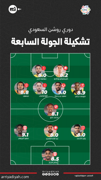 دوري روشن السعودي.. تشكيلة الجولة السابعة